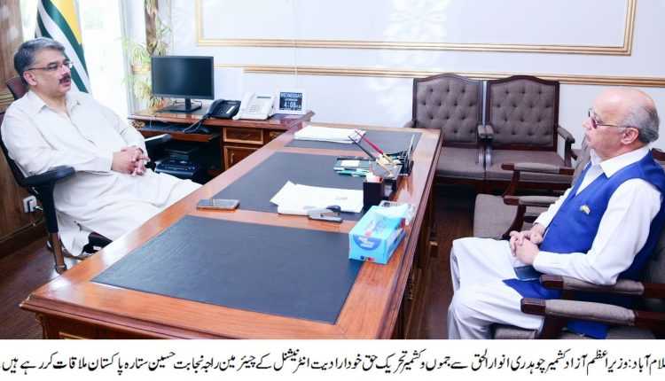 وزیراعظم آزاد حکومت ریاست جموں و کشمیر چوہدری انوارالحق سے جموں و کشمیر تحریک حق خود ارادیت انٹرنیشنل کے چیئرمین راجہ نجابت حسین ستارہ پاکستان نے ملاقات کی ۔اس موقع پر وزیراعظم نے کہا کہ تحریک آزادئ کشمیر اورسیز کشمیریوں کا تحریک تکمیل پاکستان کا ایجنڈا ہے۔